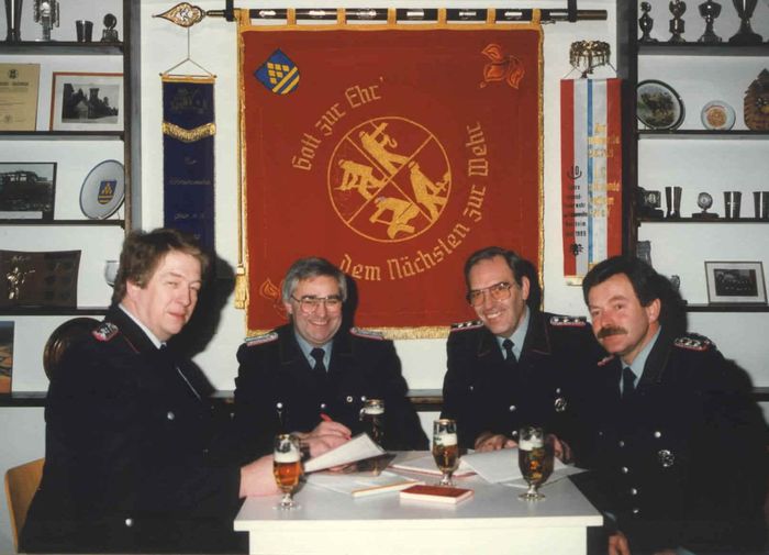 Im Hintergrund ist die bereits gelieferte und geweihte Feuerwehrfahne zu sehen. Profitiert hat der Fahnenausschuß vom Kameraden Herrmann Buchheister. Sein Wissen aus der Ortsheimatpflege und der Erstellung des Buches "300 Jahre Brandschutz in Rautheim" hat zur Gestaltung sehr gut beigetragen.