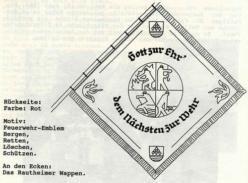 Am 18.06.1989 wurde die Rautheimer Feuerwehrfahne bei der feierlichen Fahnenweihe hinter dem Kirchengebäude mit großem öffentlichen Interesse übergeben. Auf der einen Seite ist St. Florian, auf der anderen Seite die Rautheimer Kirche zu sehen.