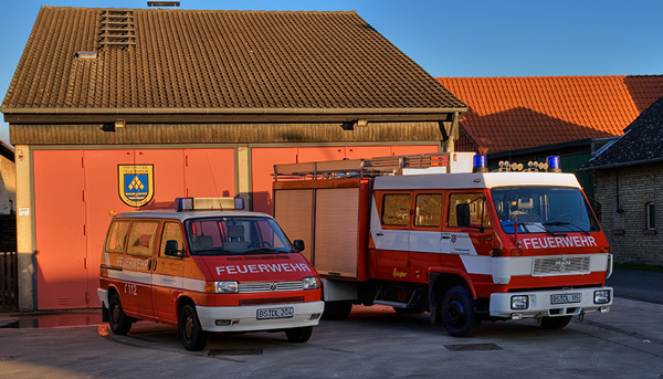 Zum Übergabezeitpunkt standen zwei LF8 im Feuerwehrhaus. Heute finden ein Zugtruppkraftwagen (ZugTrKW) und ein Löschgruppenfahrzeug (LF)10 dort ihren Platz. Vor dem Feuerwehrhaus wurde der alte Feuerlöschteich mit einer Betonplatte abgedeckt. Das Löschwasservolumen ist mit 150 m3 angegeben. Das neue Gerätehaus löste das 1845 erbaute Spritzenhaus mit Schlauchturm an der Kirche ab. Der 380.000 DM teure Neubau wurde von Gemeinde (255.500 DM), dem Landkreis (97.000 DM) und dem Deutschen Feuerwehrverband (7.500 DM) finanziert.